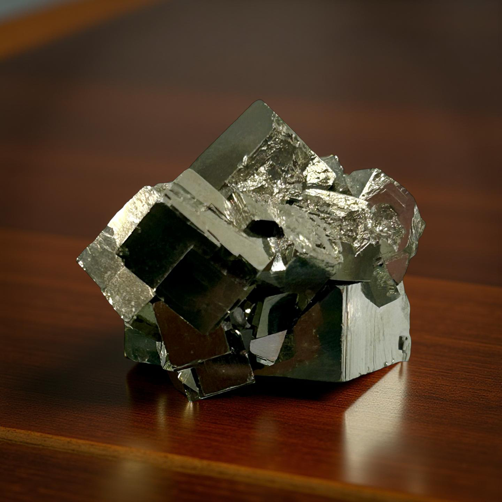 This stunning Peruvian pyrite displays perfect natural cubic formations with a brilliant metallic luster. Each cube captures the essence of Earth’s geometry — sharp, reflective, and mesmerizing from every angle. Mined in the highlands of Peru, this specimen is a symbol of abundance, confidence, and protection.