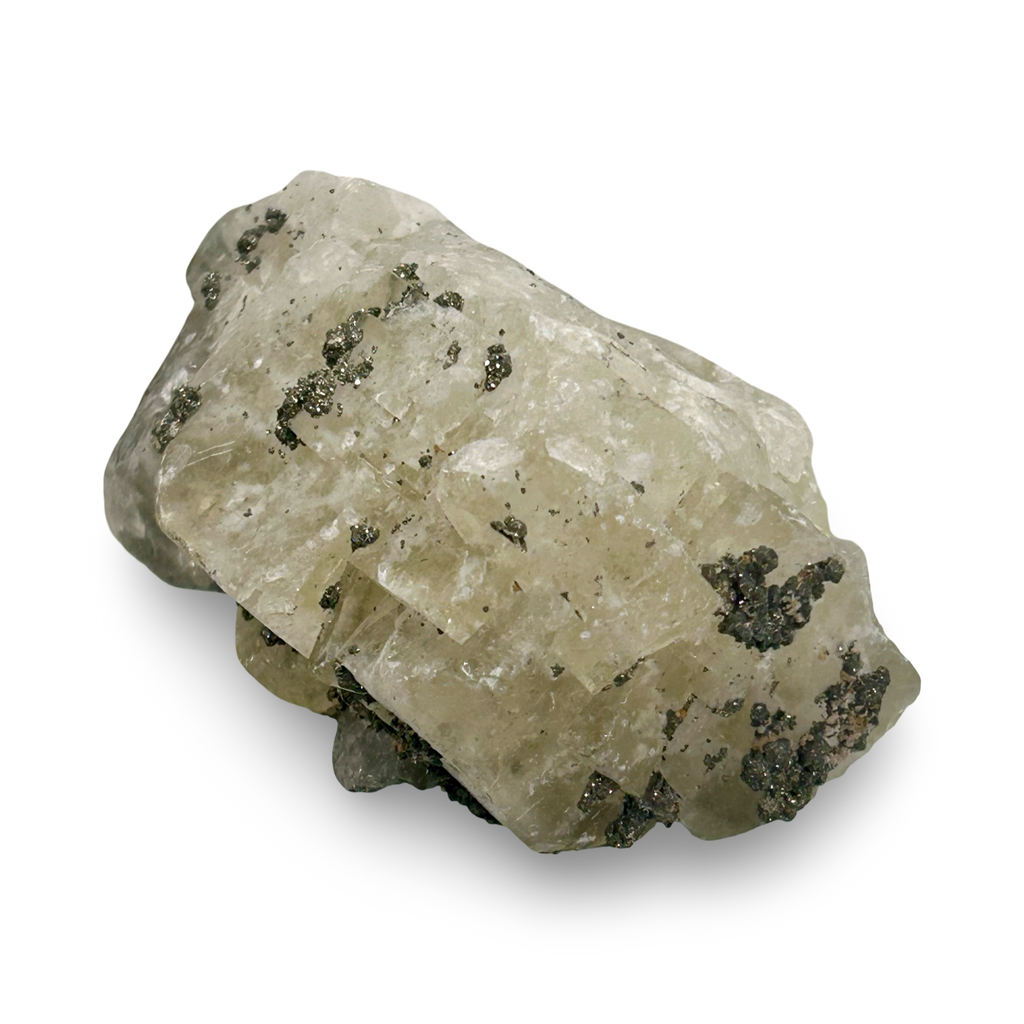 White fluorite is known for its calming and purifying energy, helping to clear the mind and balance emotions, while pyrite adds a layer of protection and confidence, amplifying the stone’s grounding qualities. Together, they create a harmonizing energy perfect for meditation spaces, crystal grids, or display.